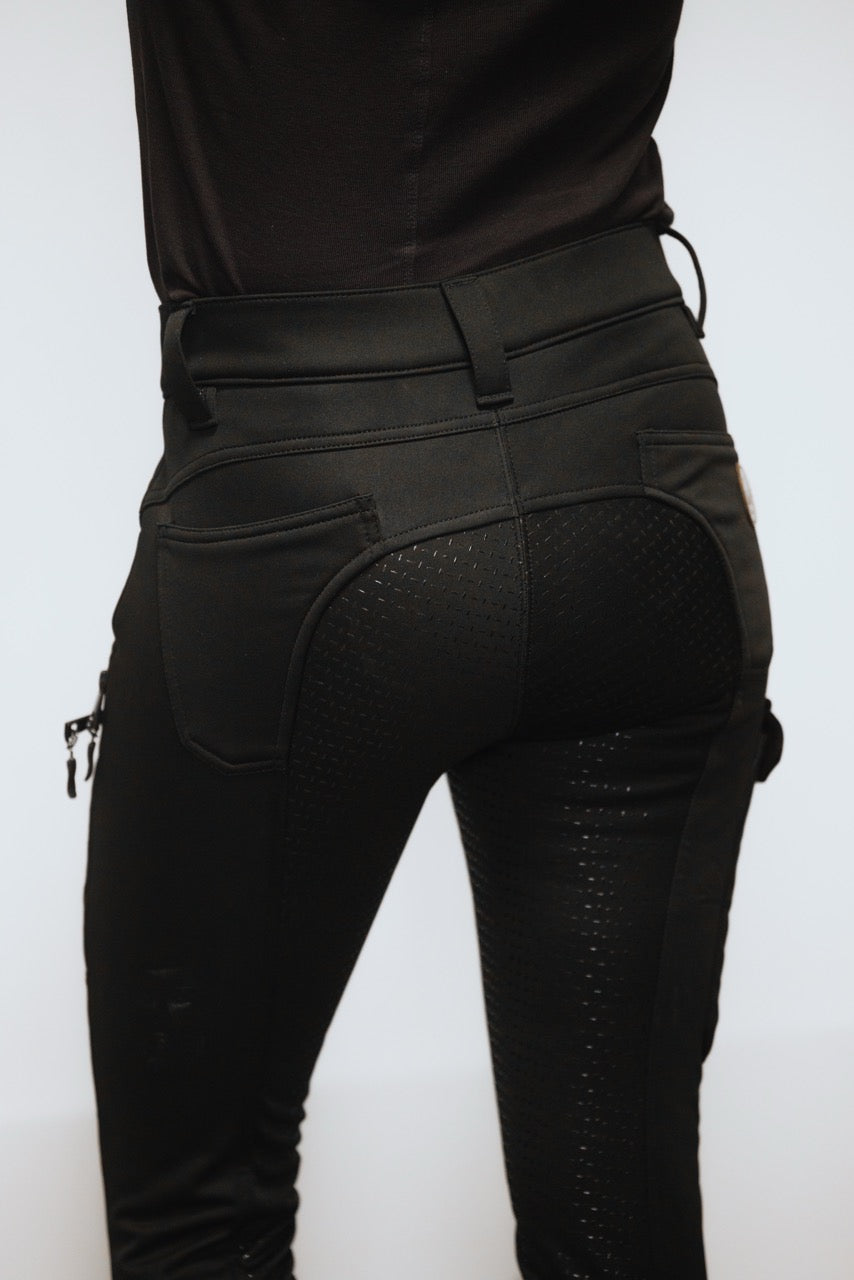 Erlebe deine Pferde auf einem neuen Level - mit unserer figurbetonten Arbeits-Reithose, speziell entwickelt für anspruchsvolle Islandpferde-Reiter:innen. Der hohe, maßgeschneiderte Bund mit praktischem Frontverschluss und anpassbaren Bundsystem, sorgt für perfekten Sitz - egal ob im Sattel oder im Stall.